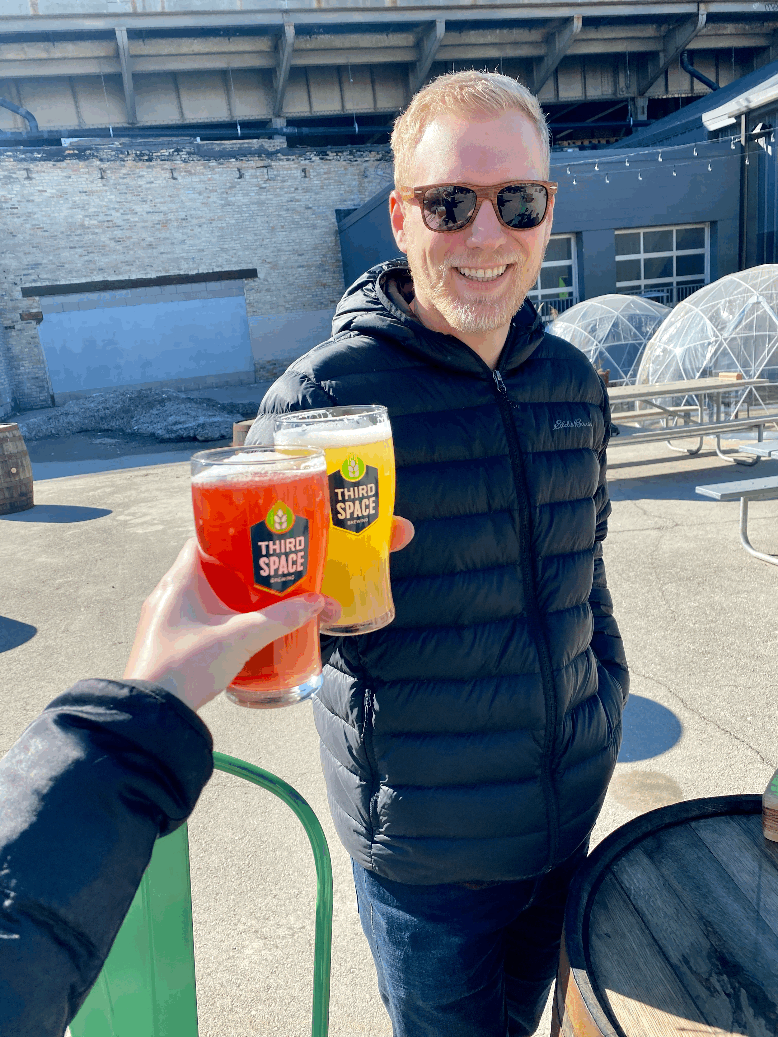 Enjoying the sun by drinking our beer on the spacious patio.